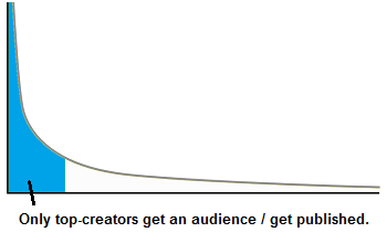 Consequence: at this period in time, it was possible for a human producing original content (that arrived in the long tail) to exist as creator, to get its content read/listened to, by other humans. This also led to economic viability of niche products for (some) creators.